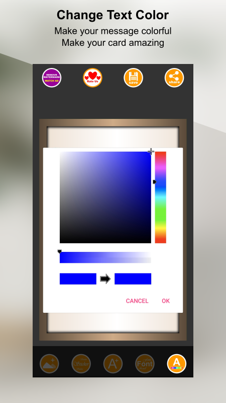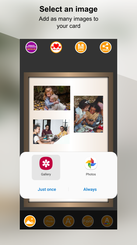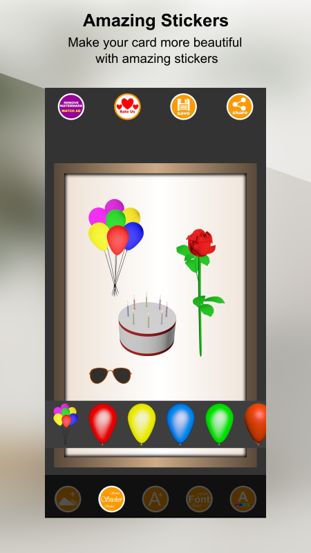 Photo Cards Pro provides you with card templates and give you opportunity to personalize your own card, load photos add beautiful stickers, add text, edit text, change text font and text color to your card, save and share your beautiful creation to your friends and family. Photo Cards also provides you with cards of different categories including Birthday cards and frames, Wedding wishes, Best Wishes, Valentine Cards, Good Morning Cards, Season's Greeting Cards and many more to share your love and wishes. This app gives the best experience